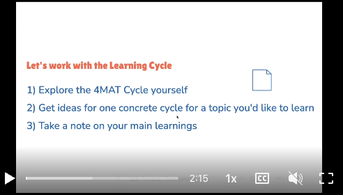 4MAT looks at any learning topic through 8 phases - covering a complete learning cycle from “Why does this matter?” to “What if I adapt this?”