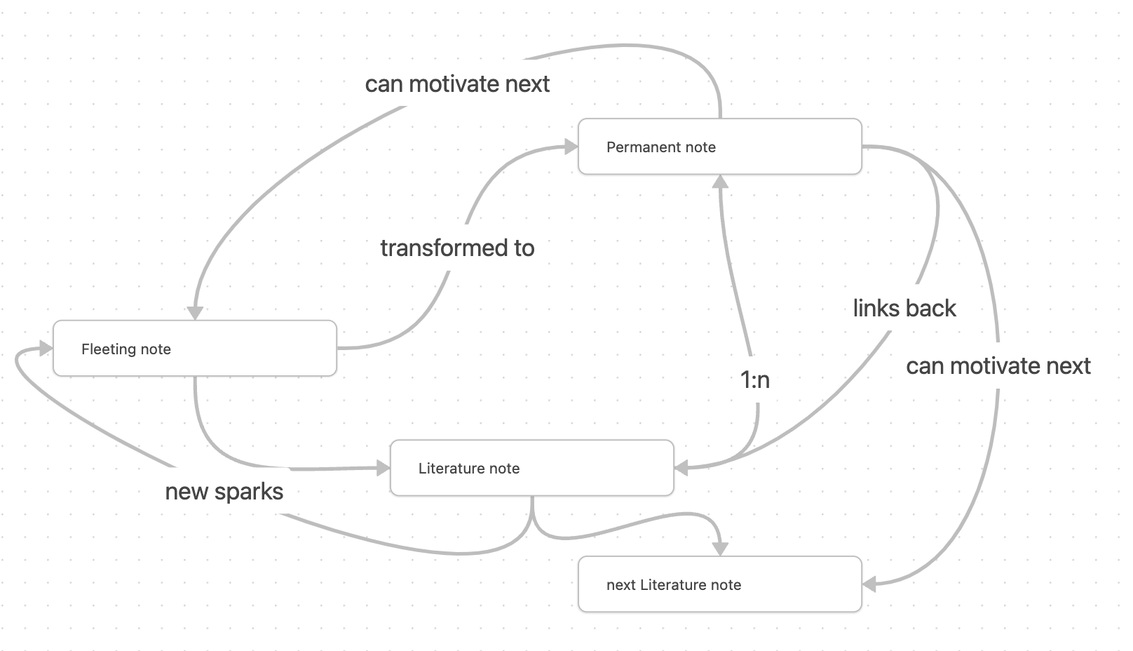 And it became obvious that there is a transition from literature notes and derived permanent notes. And there is also a transition from fleeting notes to permanent notes and also to literature notes.