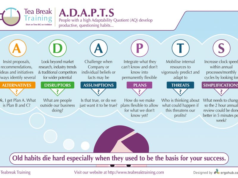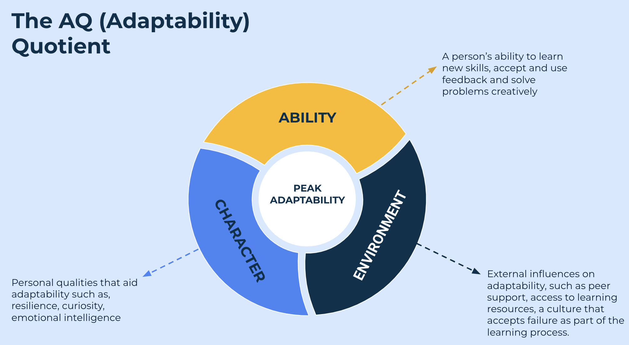 Speed (S): Agility and the ability to act quickly are important in adapting to new situations. A high AQ requires the ability to respond rapidly and effectively to change, which the ‘Speed’ aspect of ADAPTS emphasizes.