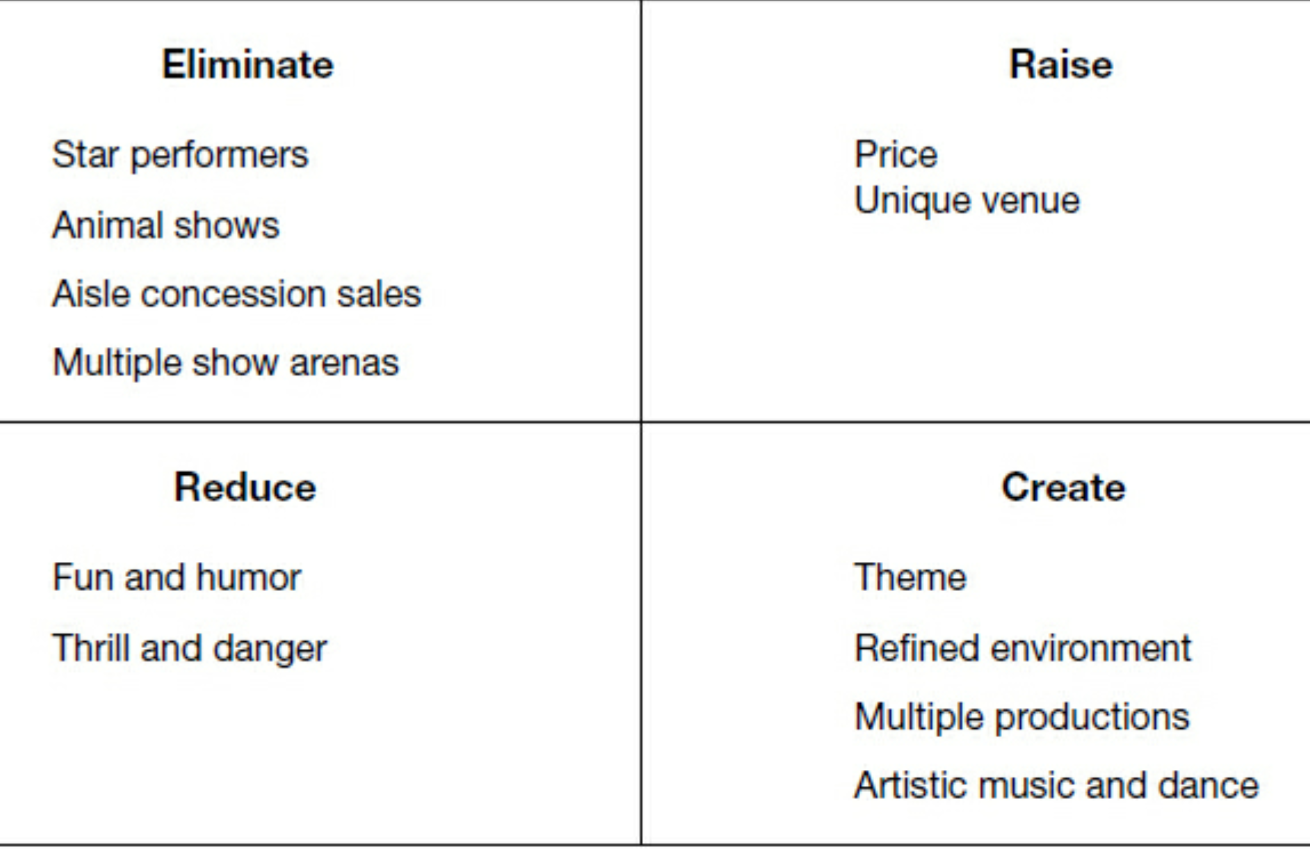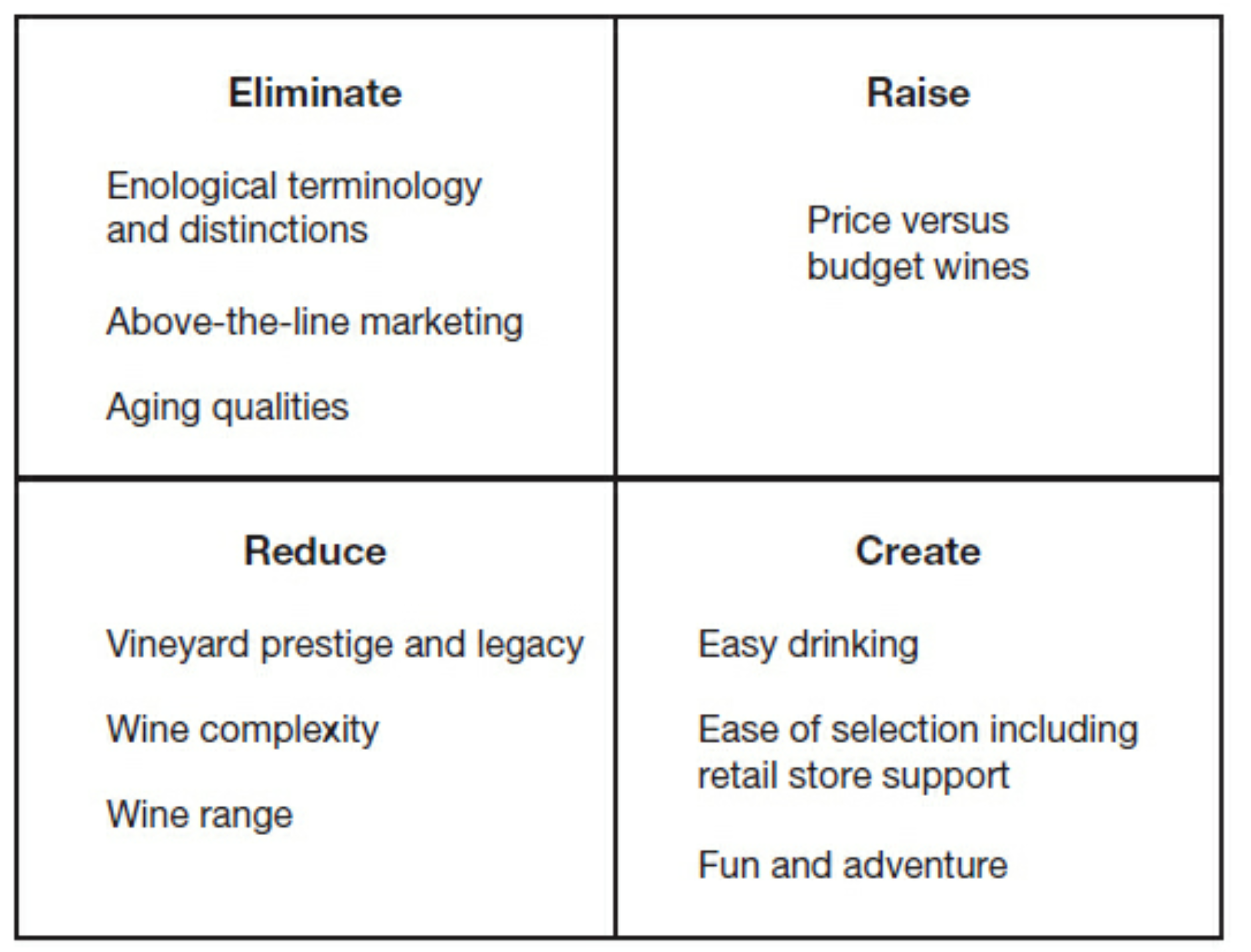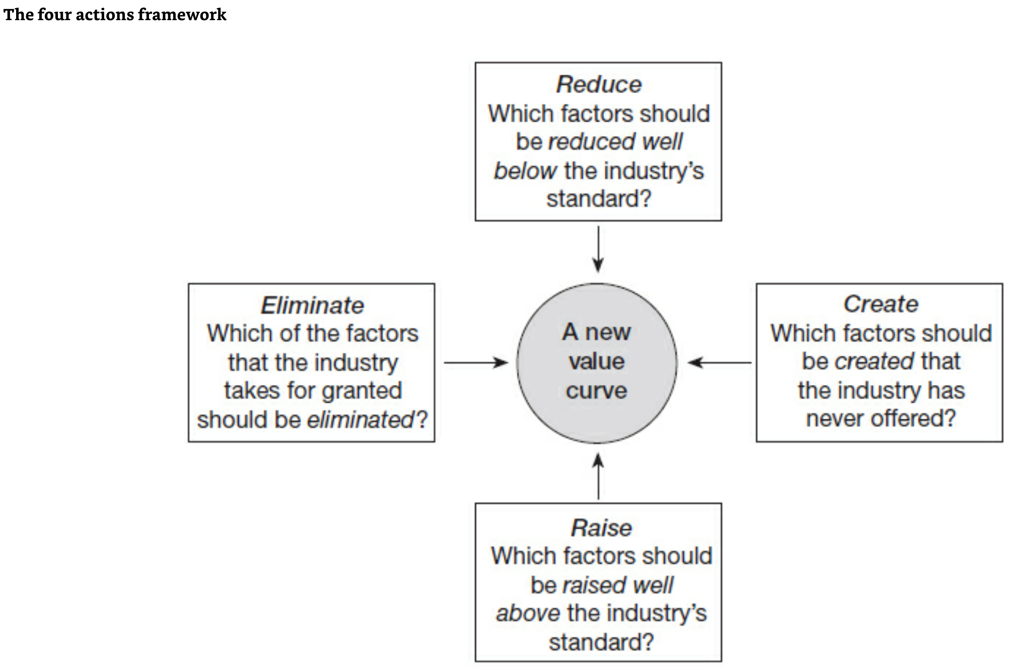 4 Actions Framework - Recude-Eliminate-Raise-Create