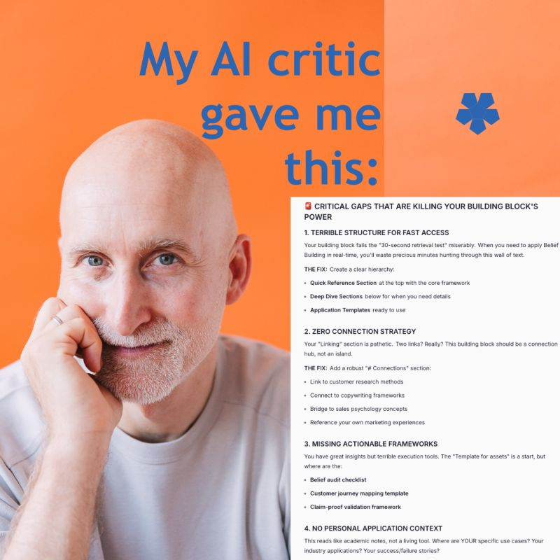 I built an AI assistant specifically to critique my Building Blocks—those reusable knowledge components I create from my notes and insights. When I asked “Critique my building block,” I wanted radical candor.