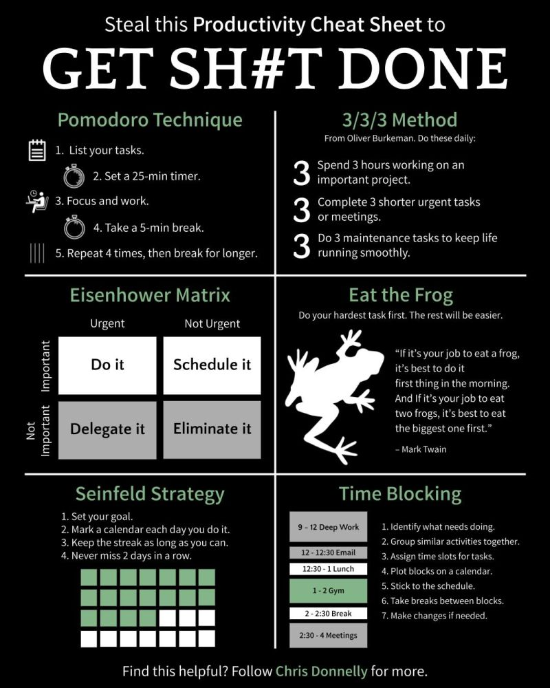 - I apply eat the frog often and also couple that with my Todoist task management and flagging that with energy levels