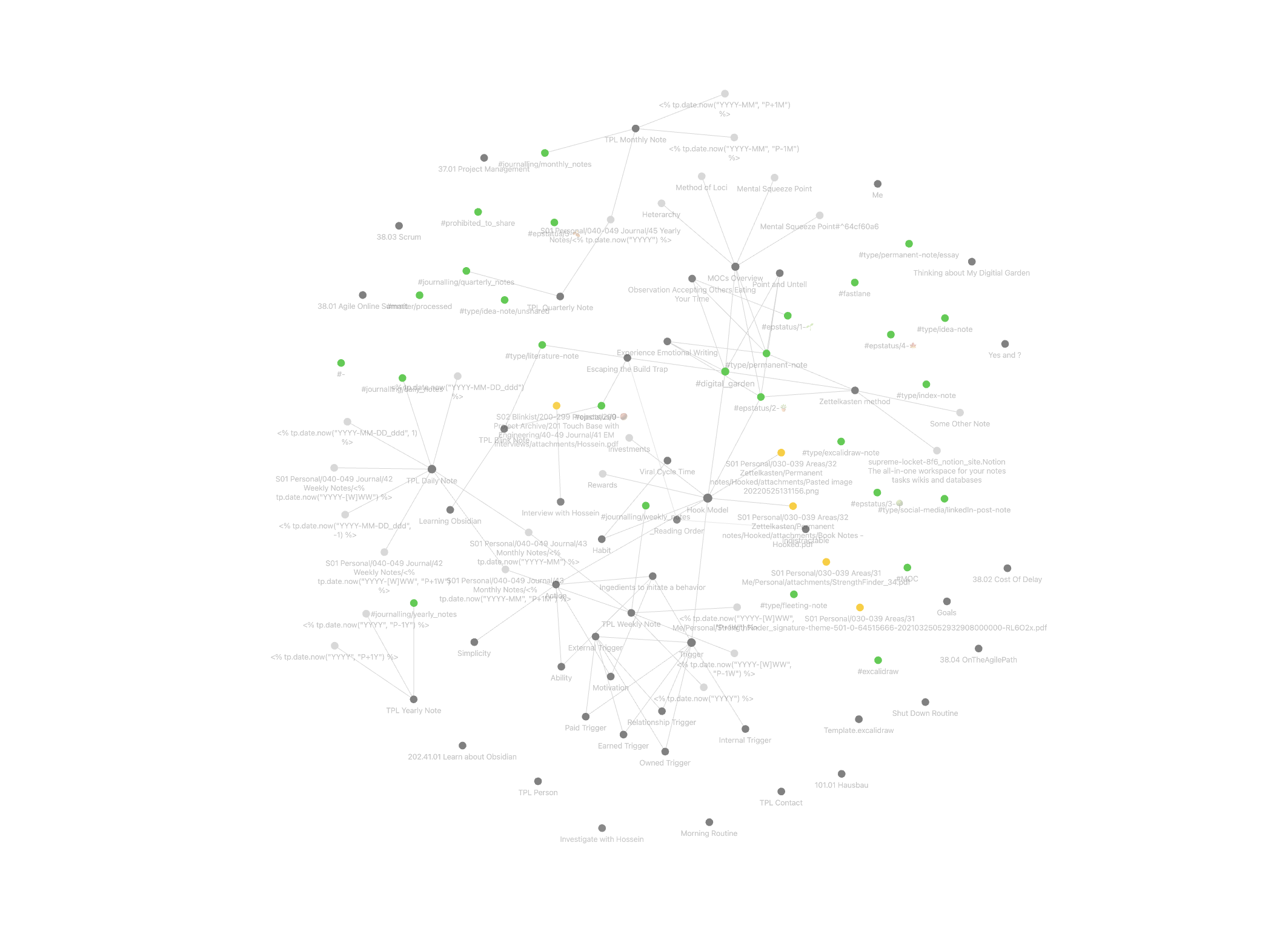 I gained hope when a colleague introduced me to his usage of Obsidian and working with notes. I found the visualised cloud of notes and their connection quite impressive. This gave me a picture and provided me with an important marker to orient on.