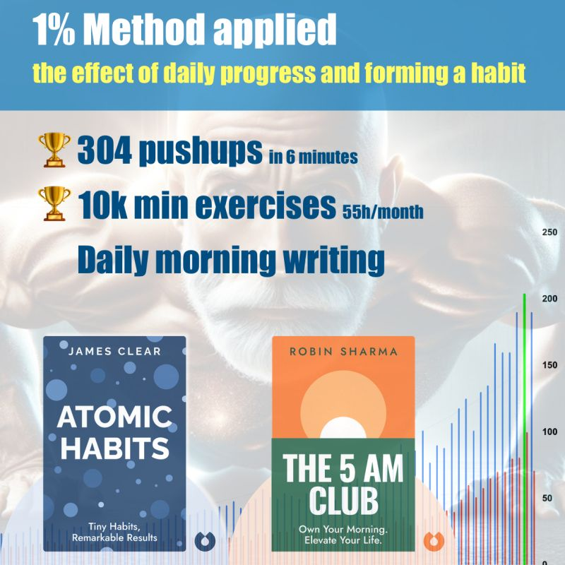 New records in March. With following the 1% Method and aiming for progress each day I was able to stretch my daily pushup record to now 304 in 6 minutes. Just copy this simple approach: