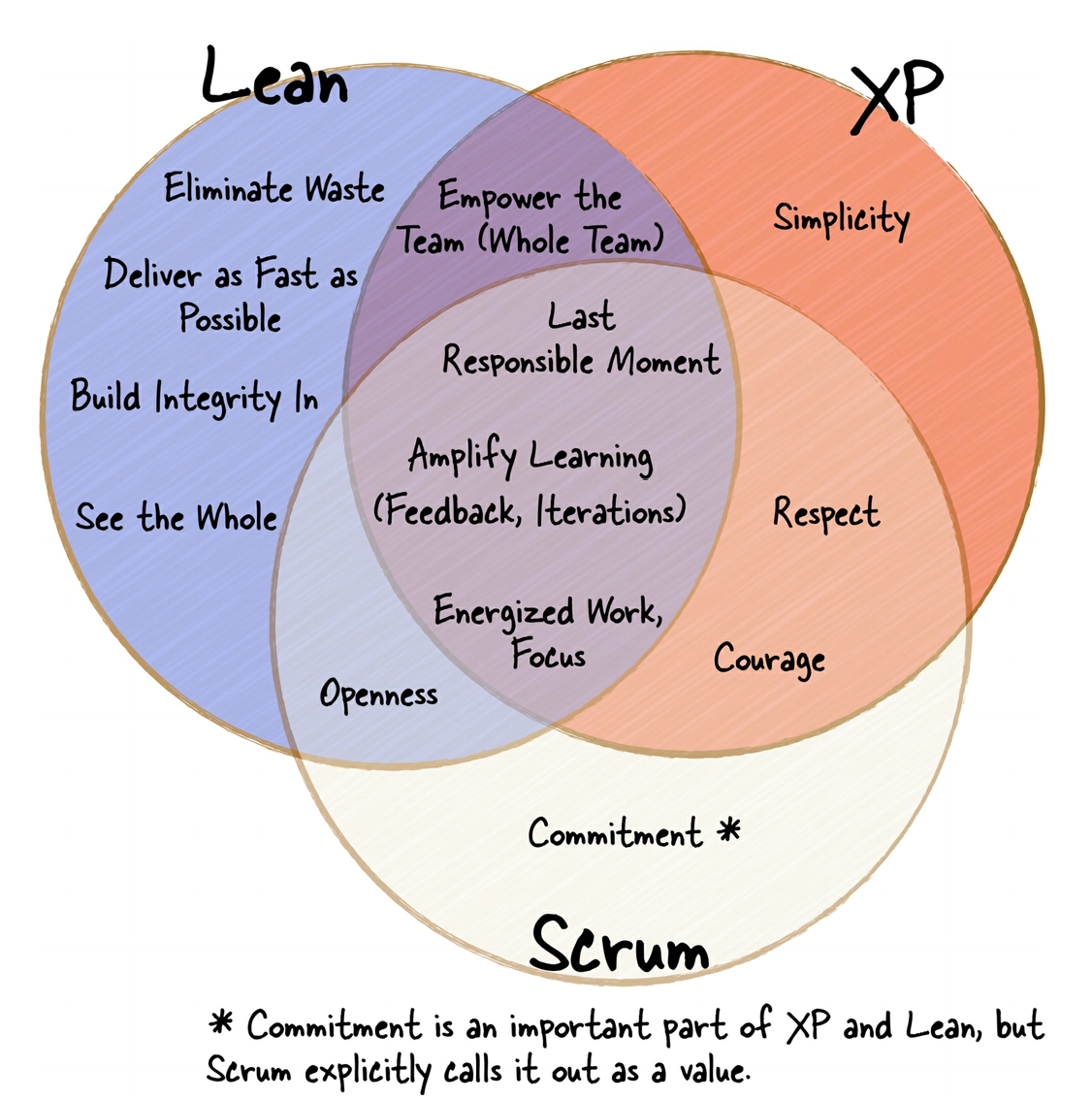 Unlike Scrum and XP, Lean doesn’t include a set of practices. Lean is a mindset, and just like with the mindset for Scrum or XP, Lean comes with values and principles (which, in Lean terminology, are called “thinking tools”). [[Learning Agile]] (p 269) The mindset of lean is sometimes called lean thinking.