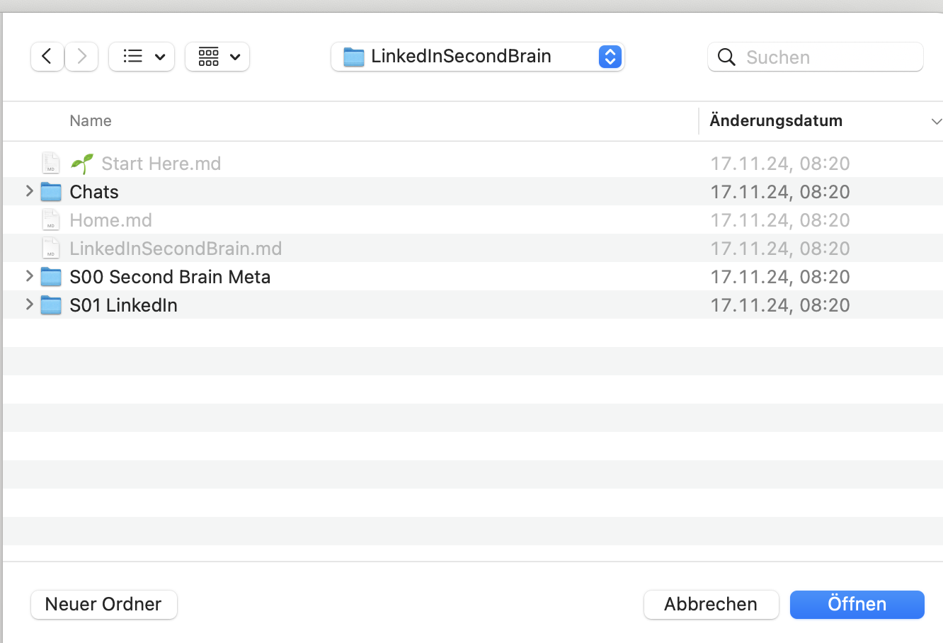 Important! Pick the folder LinkedInSecondBrain, then open it.