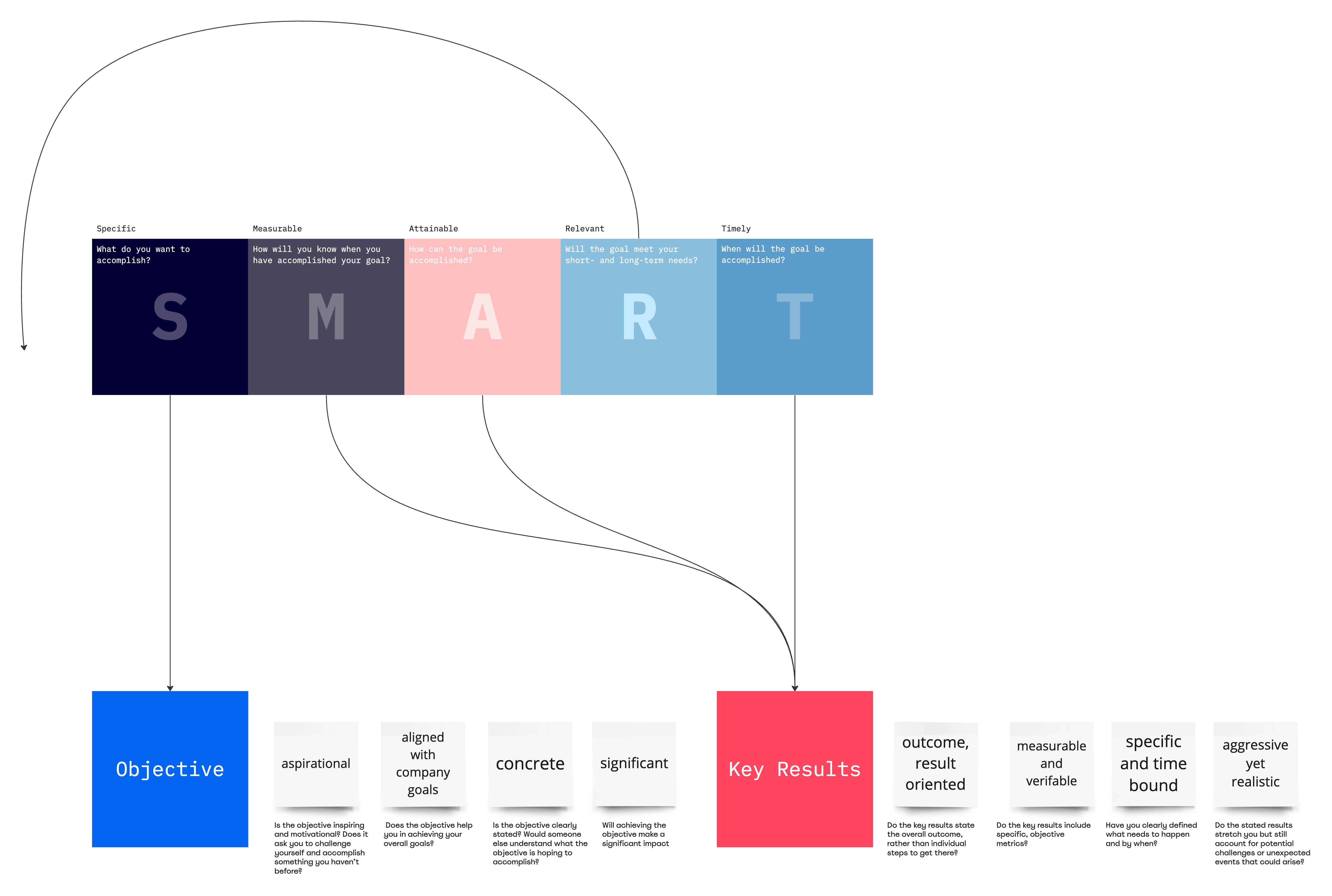 🌱 (seedling) | Permanent note | ✷ 2024-06-07 21:08 ↺ 2025-06-25 06:10 Mapping OKR and SMART Linking MOC OKRs [[SMART Goals]] Notes mentioning this note There are no notes linking to this note.