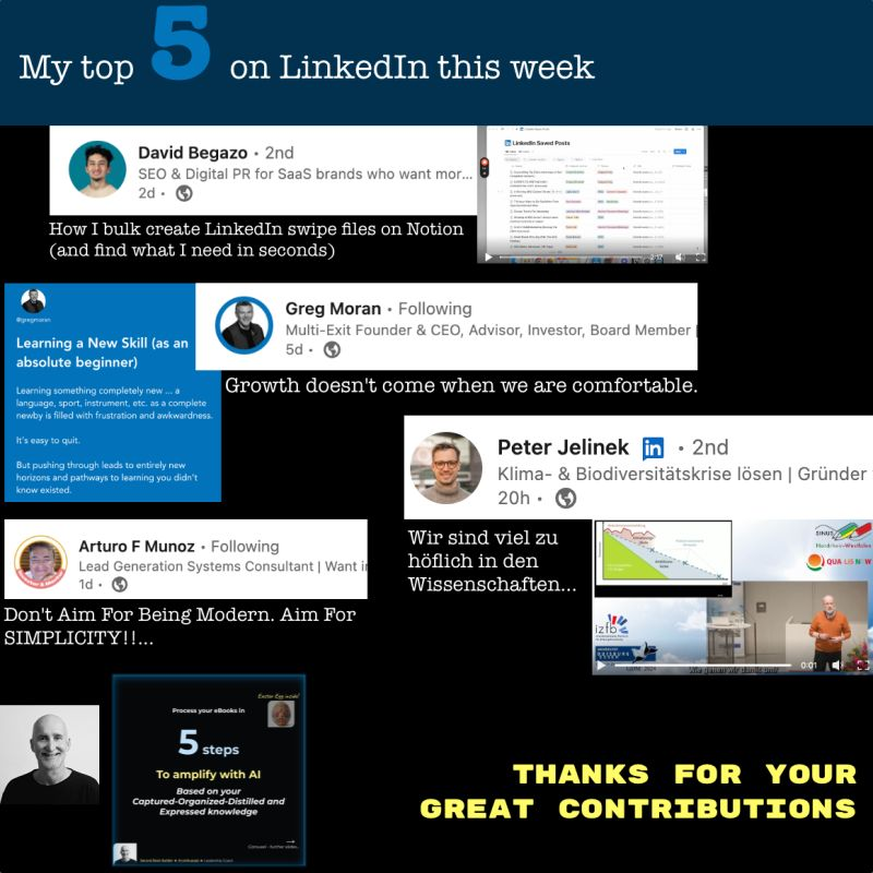 This week on LinkedIn, I loved the fact-rich presentation about Climate Change and education, copied a powerful Notion template, laughed on the aim for simplicity, reflected on growth and extracted value from eBooks with AI: