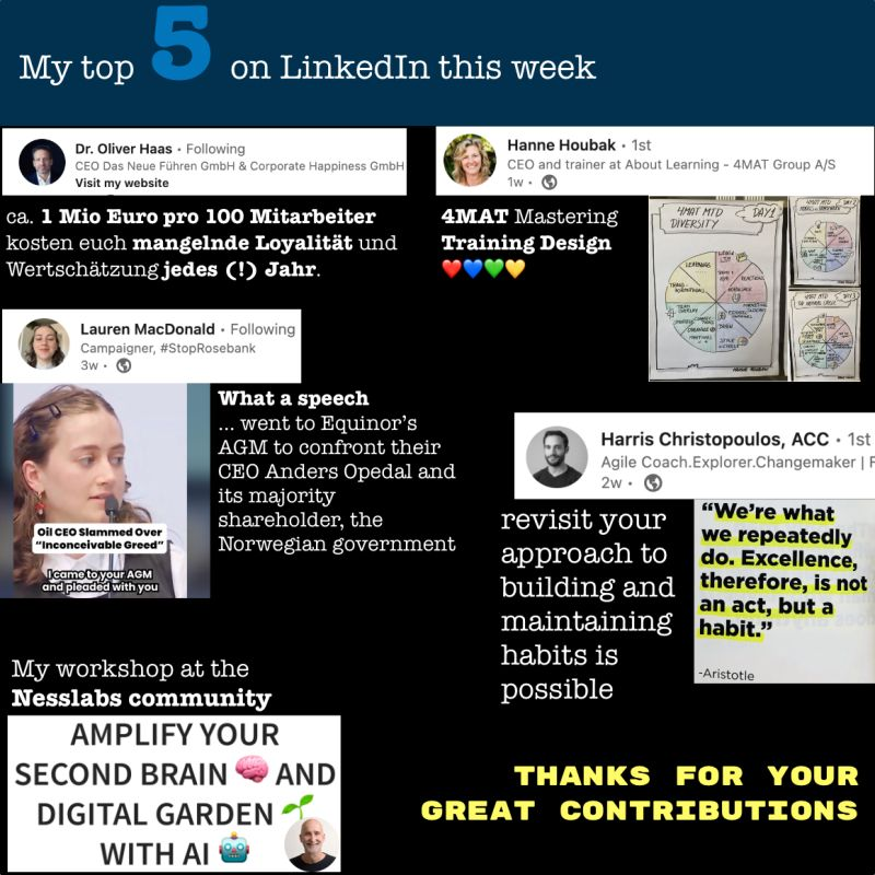 My top 5️⃣ LinkedIn Insights this Week 💡 (❌🛢, 📈costs,🧠+🤖,4MAT,Habit building)