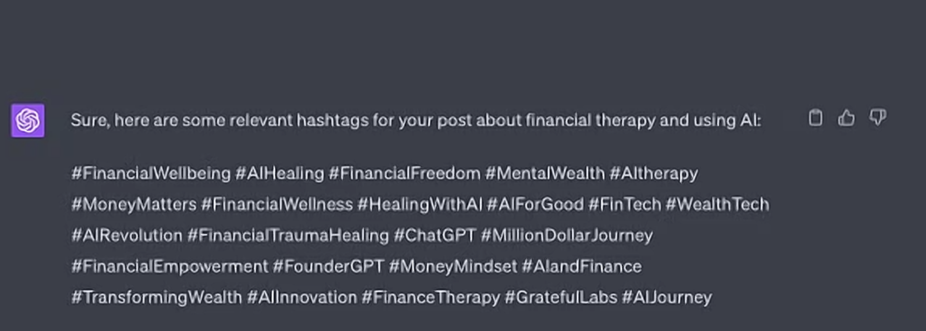 Take your transcript and ask: Can you please write a caption and hashtags…