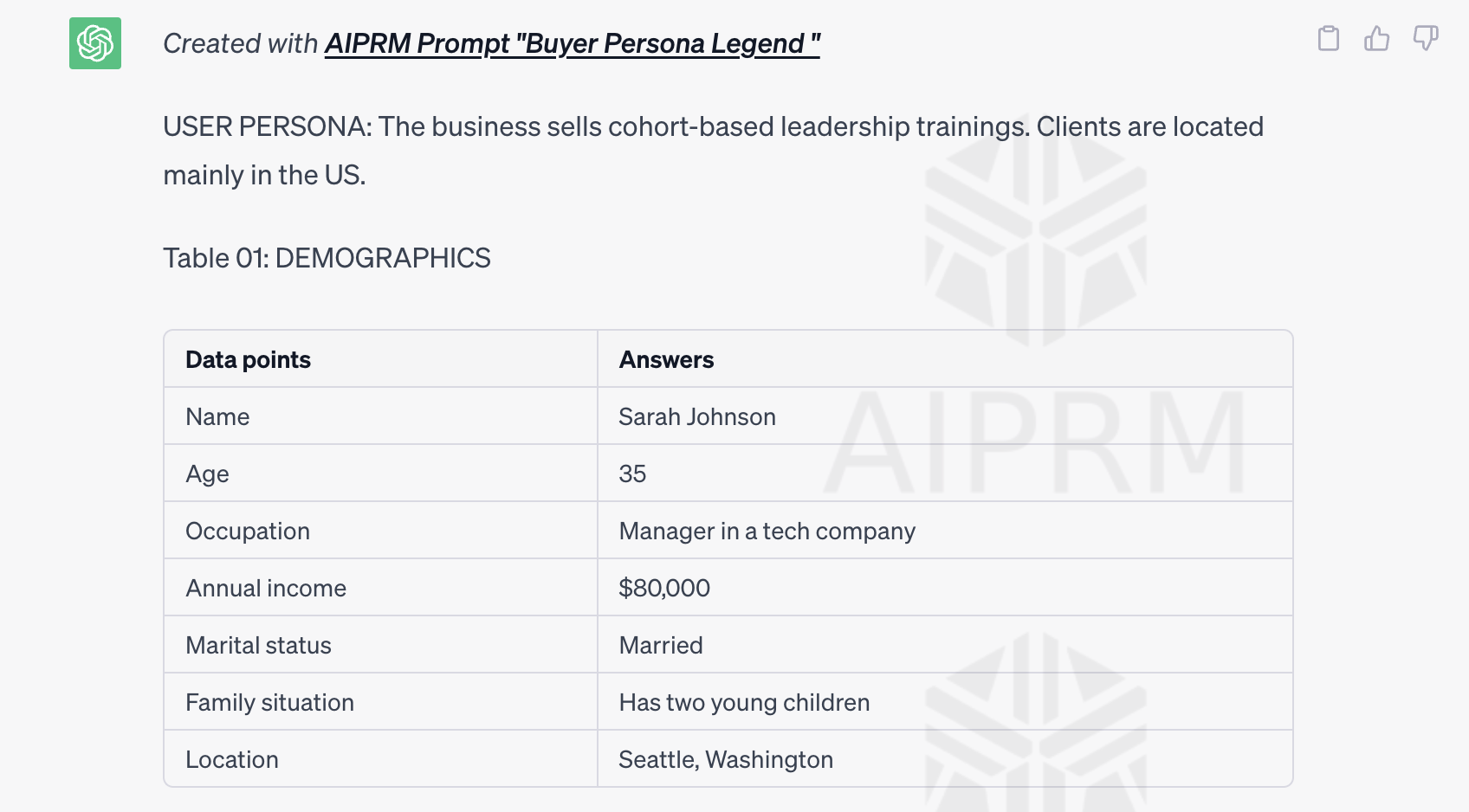 Prompt with Buyer Persona Legend (and there are many more buyer personas)