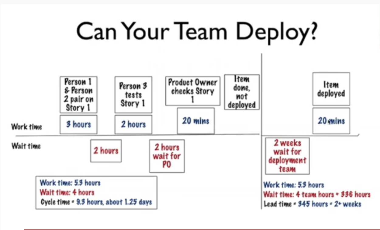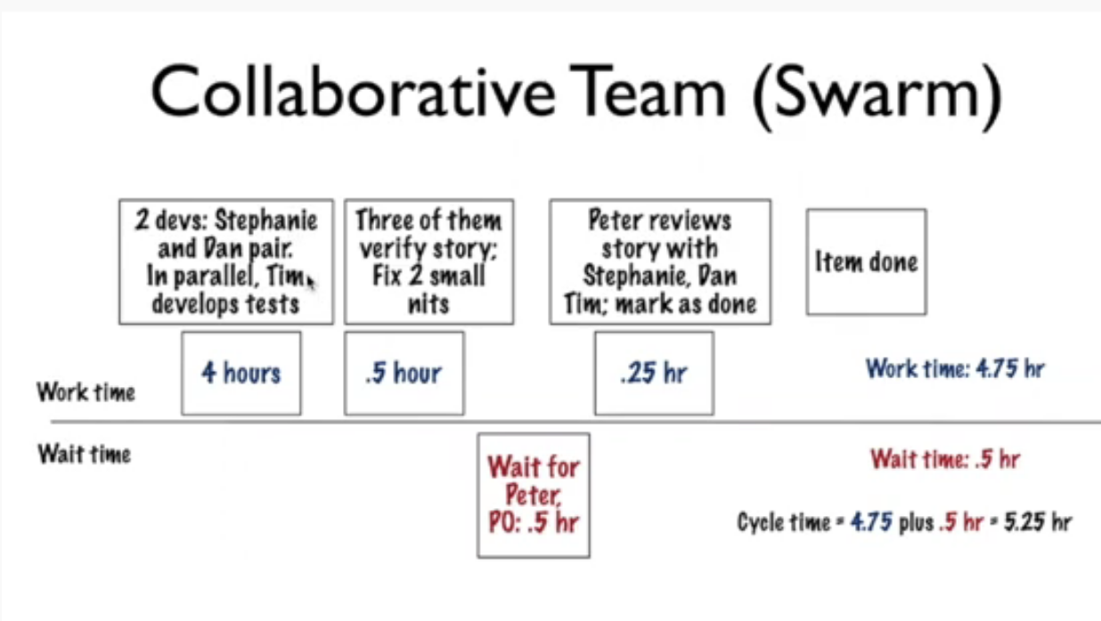 Also recommends against using Story Points and velocity. Velocity does not account for delays. Cycle time does.