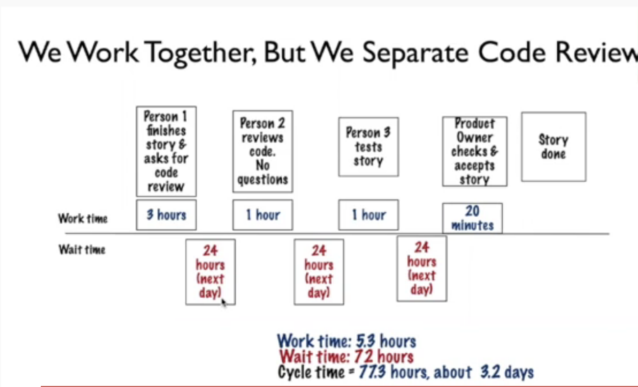 And now see the difference in cycle time when the code review, testing and PO review is separated.