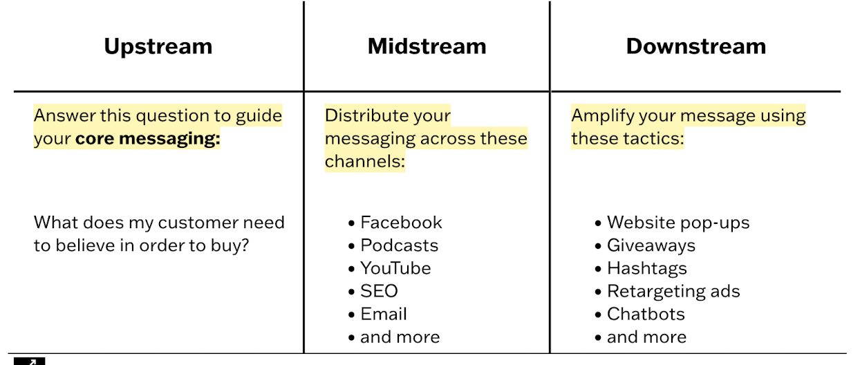 This core message should clearly articulate why someone should choose your product or service. It acts as the source of a river, from which all marketing activities flow.
