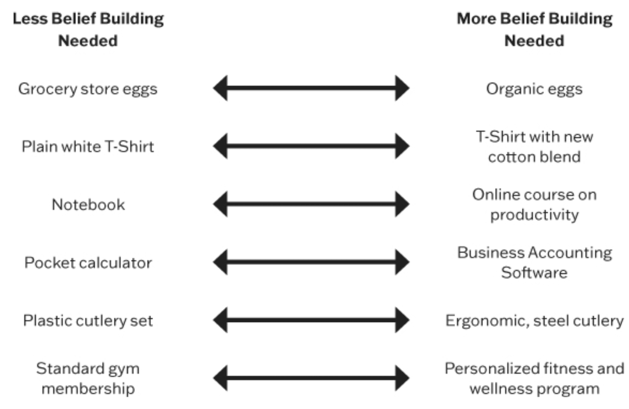 - Price of the product. The lower the price, the less Belief Building you’ll need to do.