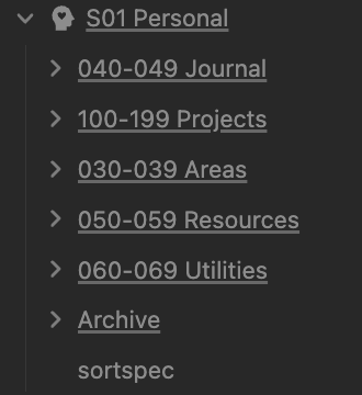 Custom File Explorer sorting - allows me to have my PARA folder structure and Johnny Decimal combined