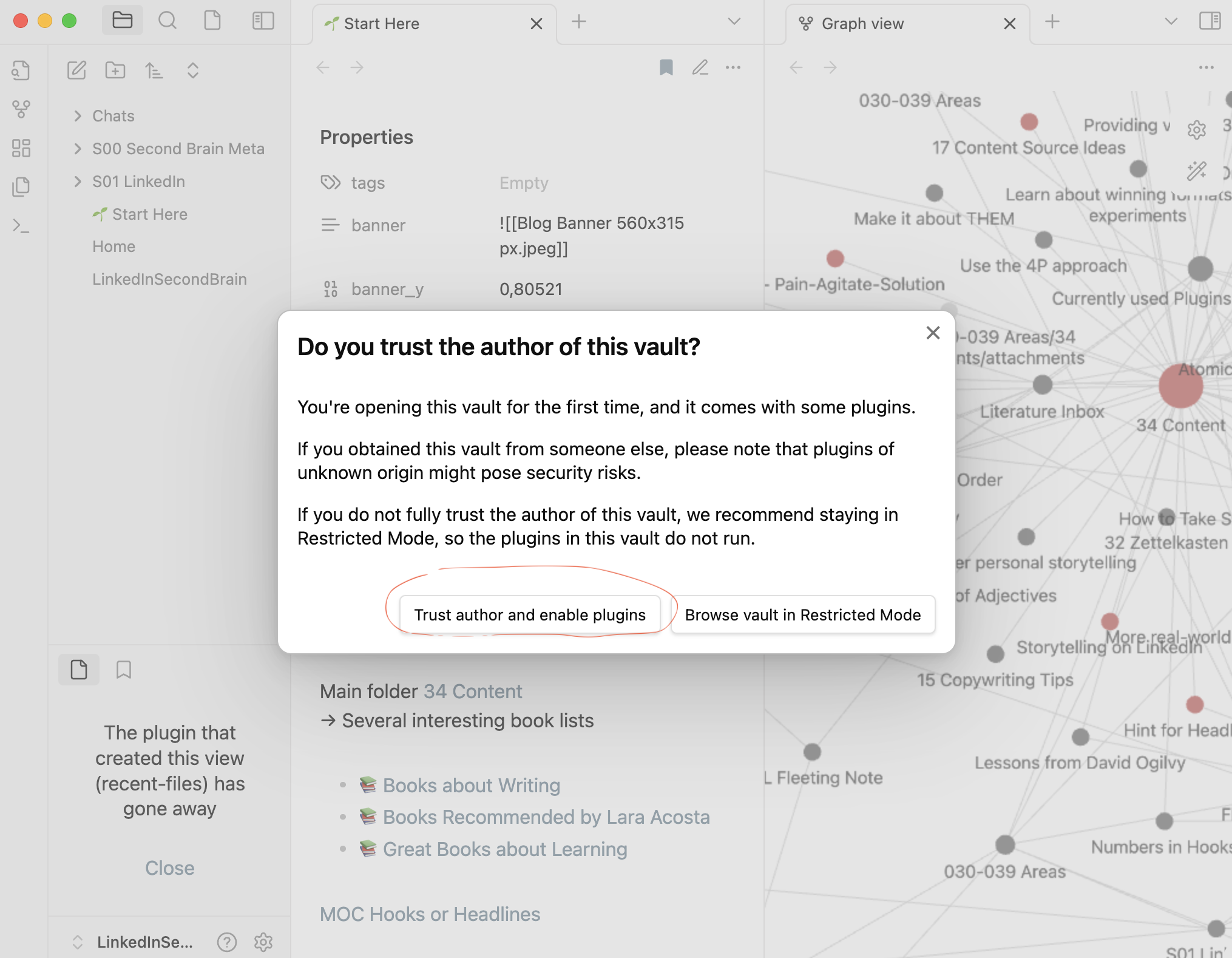 6) You should now see the Start here page in Obsidian