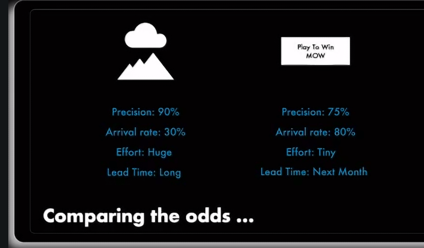 - search low risk (low downside), high impact (high upside)