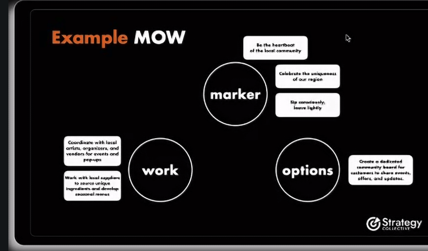 - Framework (e.g. Marker - Options - Work)
