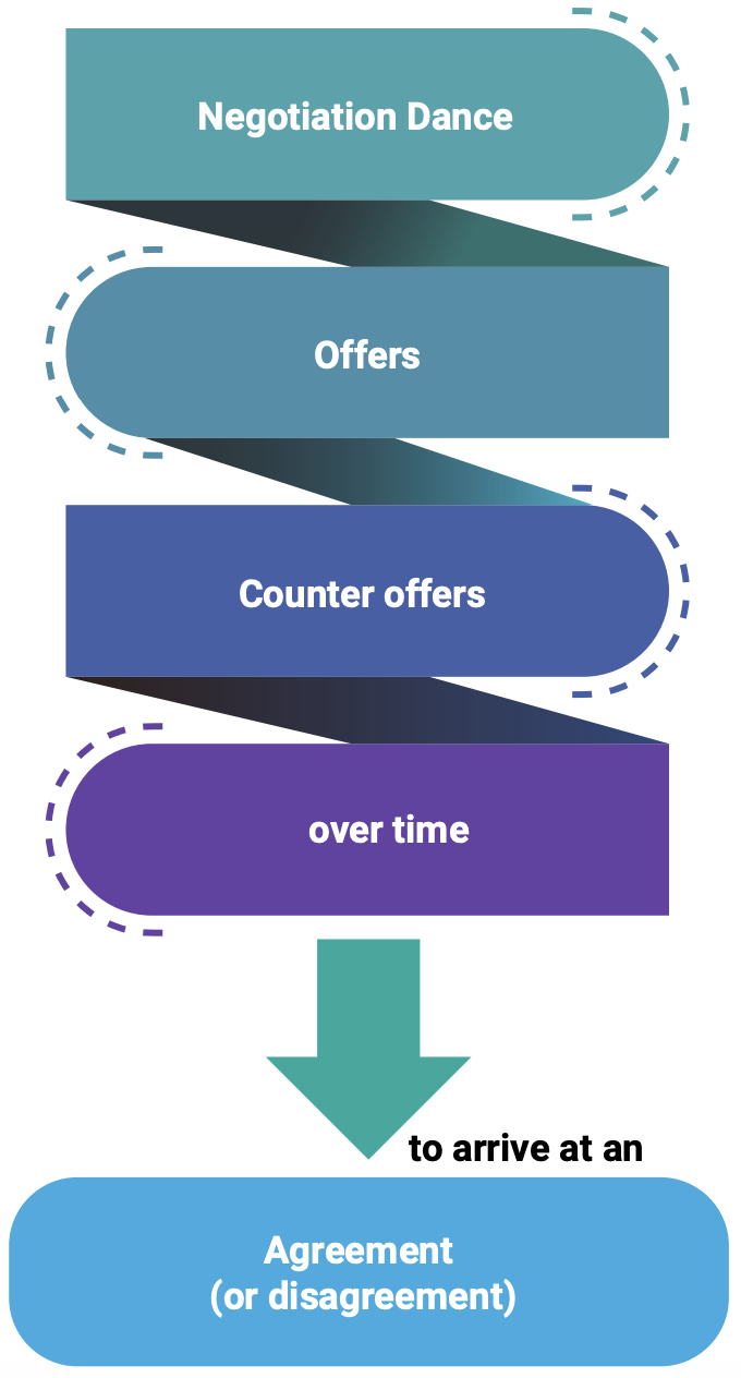 - The “Negotiation Dance” begins with counteroffers and concessions made by both parties until they either reach an agreement or not.