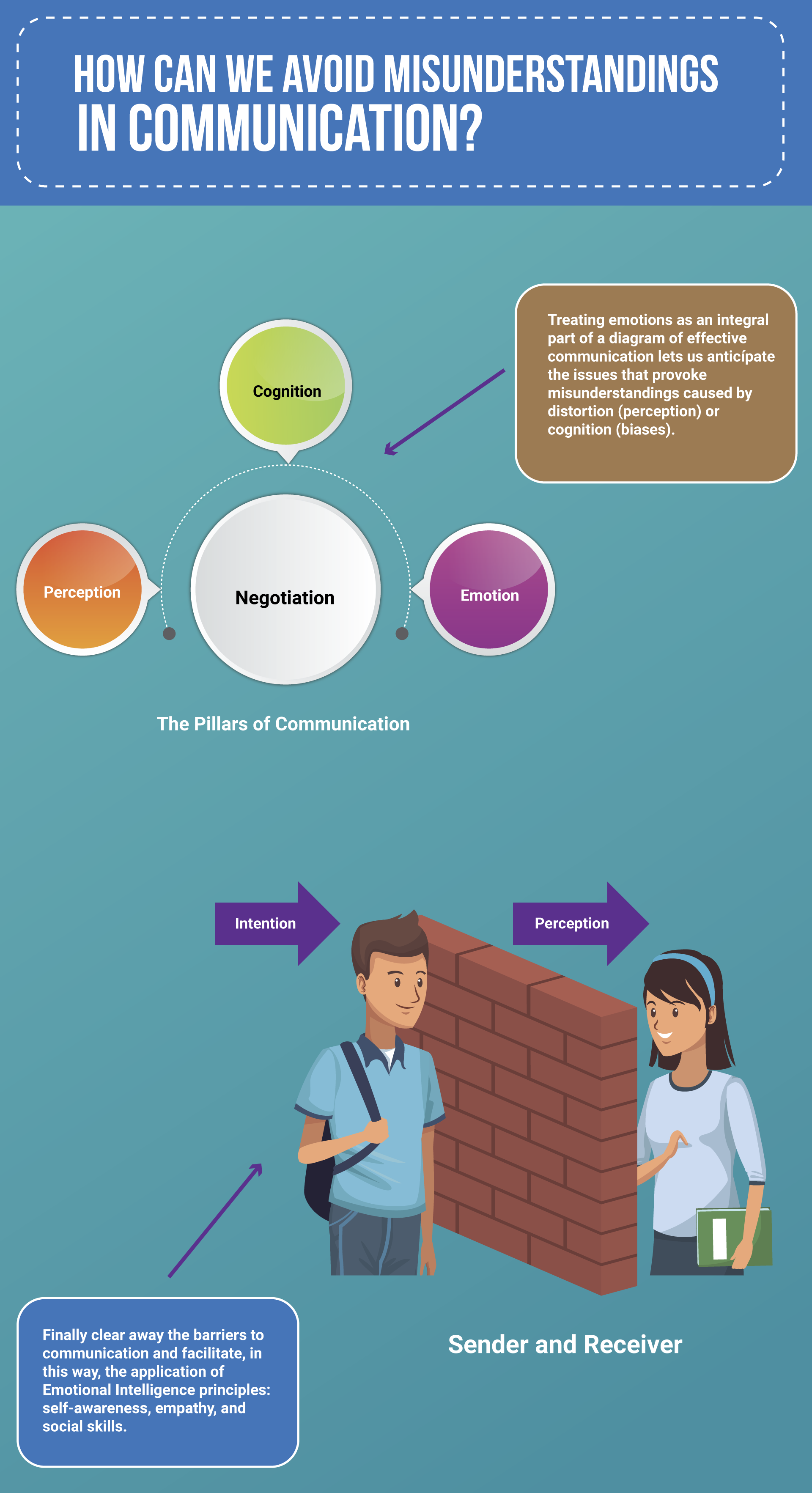 - Effective negotiation requires understanding EI in the context of the three pillars of communication: Perception, Cognition, and Emotion. Negotiators’ perception guides them to classify, select, and interpret stimuli. Distorted signals can affect the emotional landscape and hinder the implementation of EI strategies in negotiation.