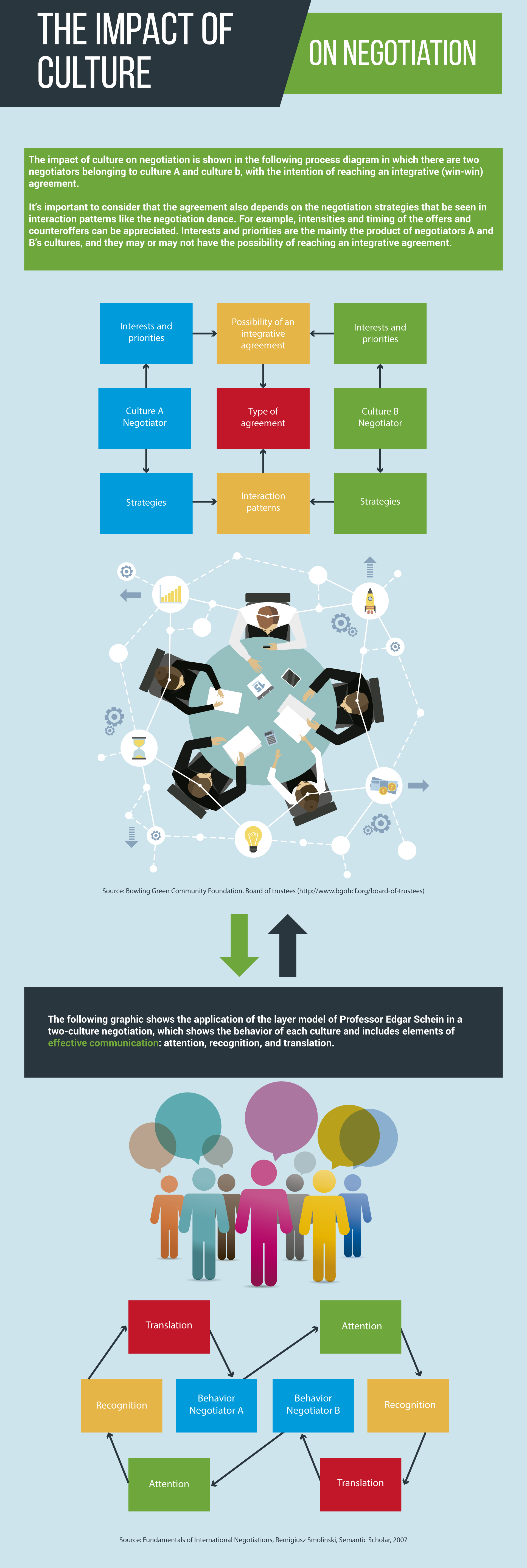 International negotiations are very demanding because of the different time zone, cultural differences, language, food, and lodging. Furthermore, there is greater susceptibility to illness because of stress. Therefore, the negotiator should be in optimal physical and mental conditions. In order to adapt, it’s best to arrive two or three days before the date of the negotiation. That time should be spent talking with your interlocutor or translator, and reviewing the material that will be used in the negotiation. It’s very important to be prepared for the negotiation before leaving home.
