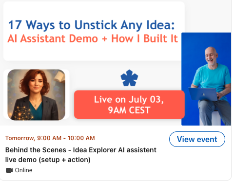 Tomorrow 9AM CEST, I’m showing the Idea Explorer AI assistant live: