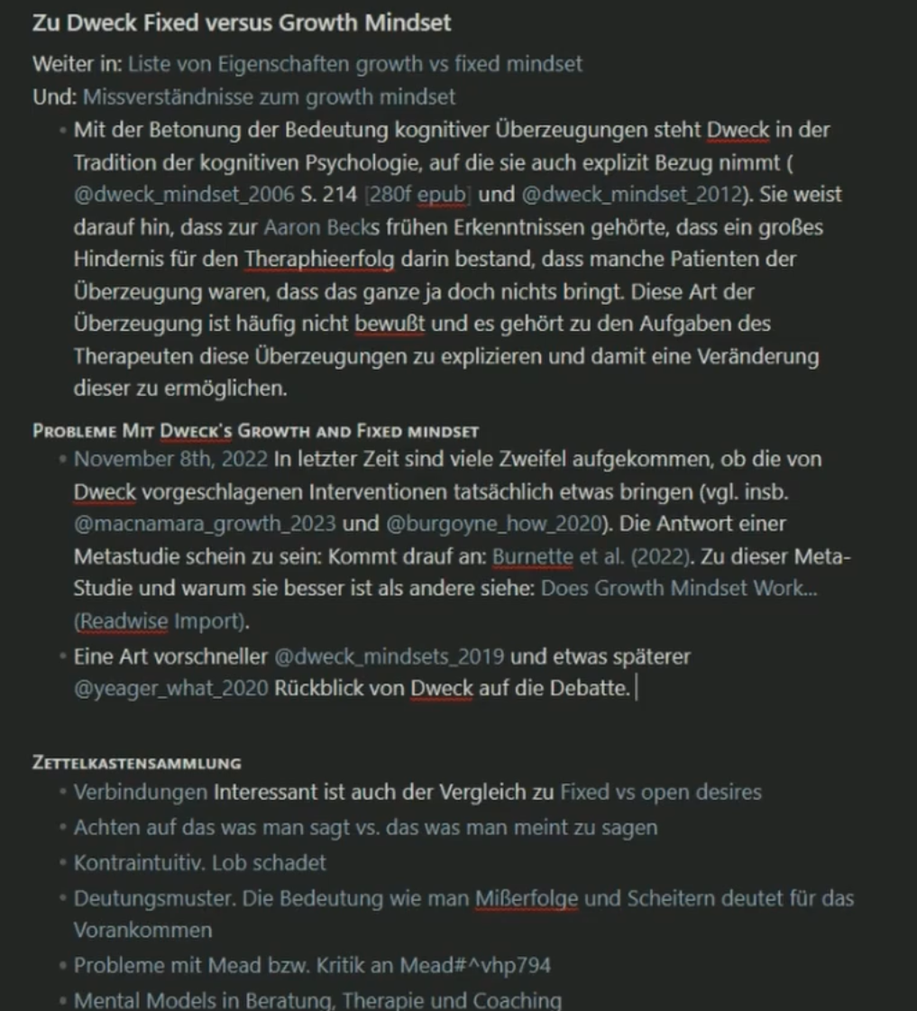 Deeper Linking in text, further connection to Zettelkasten at a bottom Linking section